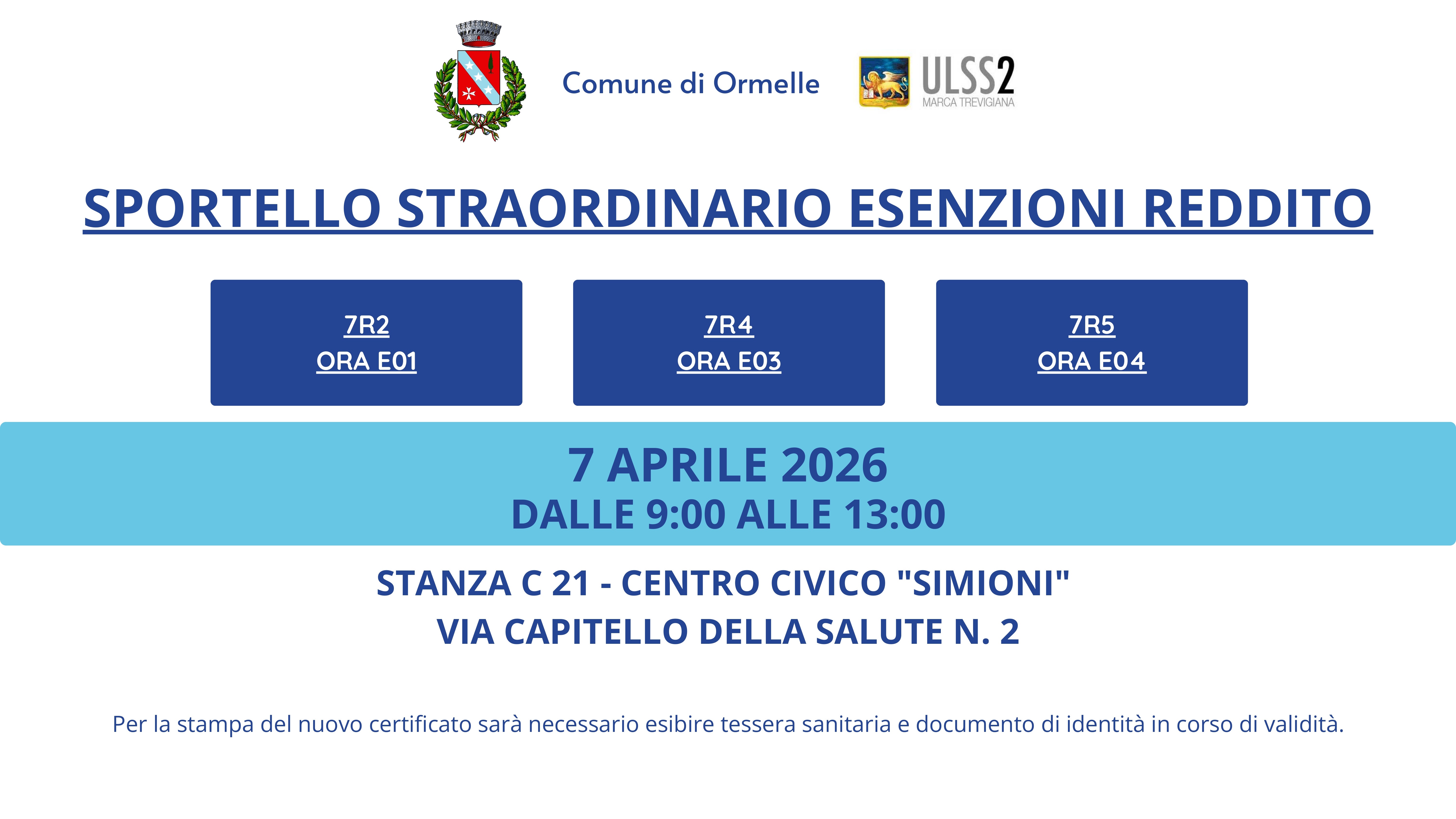 Il Comune, in collaborazione con l'AULSS 2 MArca Trevigiana ha attivato uno sportello straordinario presso il Centro Civico Simioni - Stanza C21 per il giorno 7 aprile 2026 dalle 9.00 alle 13.00 a supporto della popolazione coinvolta.